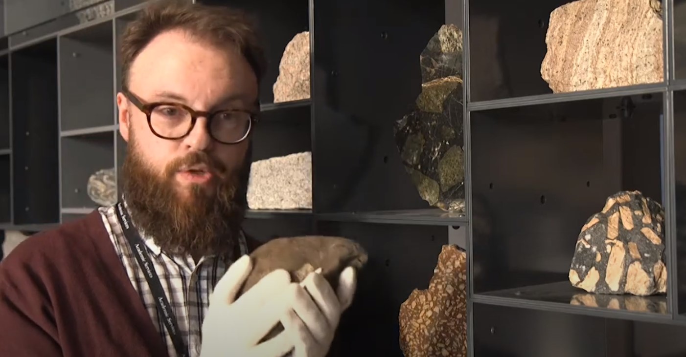 William, a third year Geology and Geography student, talks about a volcanic rock specimen from Mt Meru in Tanzania, which may have been from the most recent eruption in 1910.