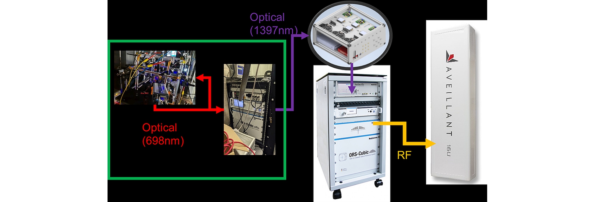 At the core of the Quantum oscillator sits the Quantum clock that captures precisely Strontium atom transitions that are used to lock an ultra-stable 698 nm laser. This in turn references a Transfer Laser operating at 1397 nm which pushes the optical signal via a phase noise stabilised fibre link up to the radar cabin where it interfaces with a Menlo Microwave Generator Unit (MGU) to produce an output compatible with the staring radar whilst preserving the phase noise characteristics of the optical signal. Microwaves synthesised from the high-quality output generated by Quantum oscillator will also demonstrate the added benefit of unrivalled accuracy of optical clocks compared to that of conventional oscillator devices used in radar systems.